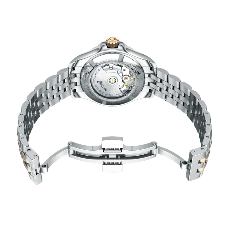 Корпус: Нержавеющая сталь 316L с частичным PVD покрытием. Коричневый циферблат, декорирован 8 бриллиантами Top Wesselton. Стрелки и часовые индексы золотистого цвета. Сапфировое стекло с односторонним антибликовым покрытием. Диаметр 34,5 мм. Водозащита 200 м.