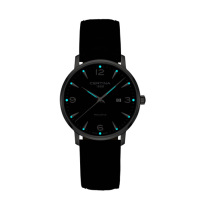 Корпус: Корпус из нержавеющей полированной/матовой стали. Чёрный циферблат. Стрелки и часовые индексы серебристого цвета с люминесцентным покрытием. Сапфировое стекло. Диаметр 39 мм. Водостойкость 100 м. Система DS.