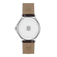 Ремешок: Ремешок изготовлен из натуральной кожи коричневого цвета, обеспечивая комфорт и завершая классический образ модели.