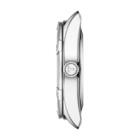 Корпус: Корпус выполнен из высококачественной стали с повышенной устойчивостью к коррозии, поверхности с матовой шлифовкой – сатинированием и полировкой до зеркального блеска. Безель имеет 6 выступов. Светло-голубой циферблат с логотипом Tissot. Стрелки и часовые индексы покрыты люминесцентным составом SuperLuminova. Сапфировое стекло с антибликовым покрытием, устойчивое к появлению царапин, обладающее высокой прозрачностью. На задней крышке выгравирован цветок с семейного герба Tissot. Диаметр корпуса составляет 36 мм. Водонепроницаемость: 100 м.
