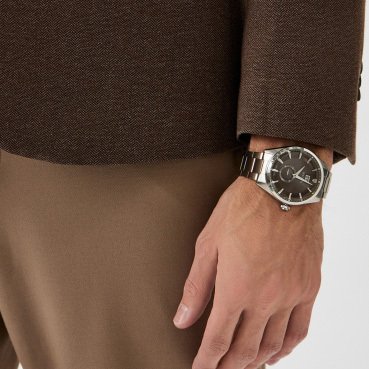Корпус: Корпус часов выполнен из нержавеющей стали 316 L. Циферблат коричневого цвета выполнен по технологии Sunray (солнечные лучи) и защищен прочным миниральным стеклом с сапфировым напылением. Метки в виде штрихов. Рифленая заводная головка с защитой. Диаметр корпуса 46 мм. Водонепроницаемость 50 метров.