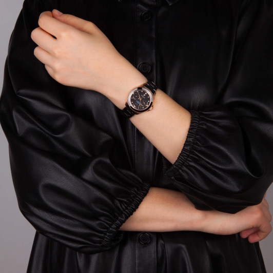 Ремешок: Керамический браслет чёреого цвета с раскладывающейся застежкой обеспечивает надёжность и комфорт.