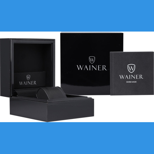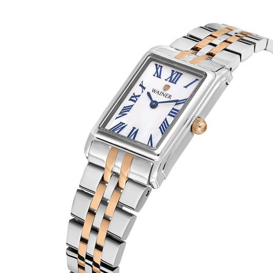 Корпус: Прямоугольный корпус из нержавеющей стали 316L с частичным PVD покрытием. Циферблат белый перламутровый, защищен устойчивым к царапинам сапфировым стеклом, украшен фирменным логотипом Wainer в положении 12 часов. Рифленая заводная головка. Размер корпуса 20,8х32 мм, . Водонепроницаемость 30 метров.