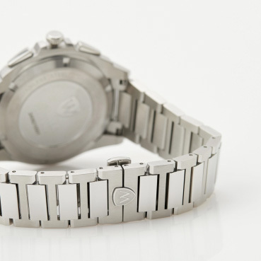 Функции: Центральные часовая и минутная стрелки, маленький секундный индикатор на «6 часах». Апертура даты находится в положении между 4 и 5 часами. Хронограф с центральной секундной стрелкой.