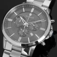 Функции: Центральные часовая и минутная стрелки, маленький секундный индикатор на «3 часах». Апертура даты находится в положении между 4 и 5 часами. Хронограф с центральной секундной стрелкой.
