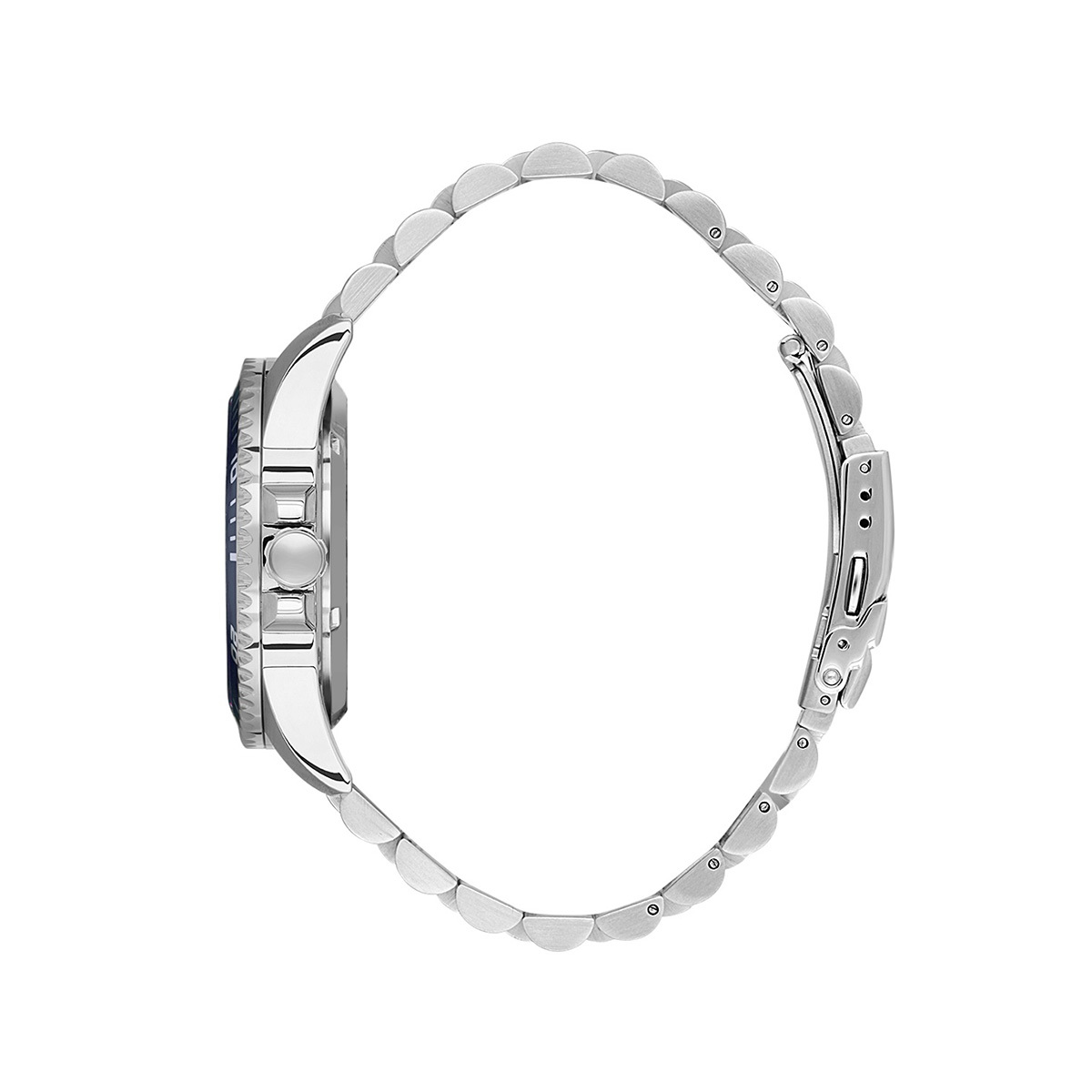 Корпус: Корпус часов выполнен из высококачественного хромированного сплава (Alloy). Синий циферблат с чёткими метками и стрелки с люминесцентным покрытием. Синий неподвижный безель. Прочное минеральное стекло обеспечит защиту часов от повреждений. Диаметр 44 мм. Водозащита 50 м.