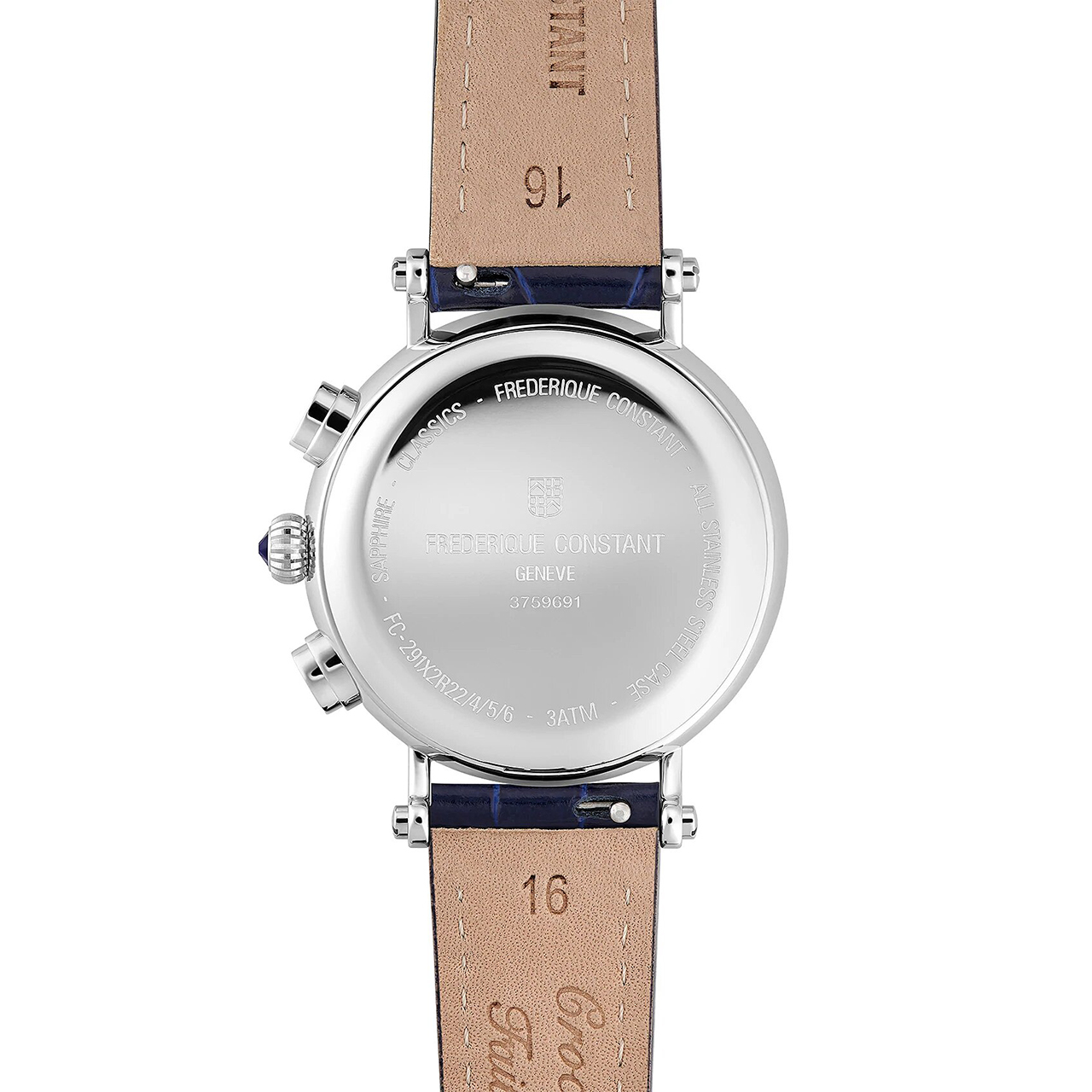 Корпус: Корпус из нержавеющей полированной/матовой стали. Циферблат синий, инкрустирован бриллиантами. Сапфировое стекло с антибликовым покрытием. Диаметр 34 мм. Водозащита 30 м.