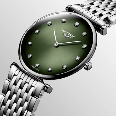 Корпус: Корпус выполнен из высококачественной стали 316L с повышенной устойчивостью к коррозии, поверхность с полировкой до зеркального блеска. Циферблат зелёного цвета выполнен по технологии Sunray (солнечные лучи), украшен 12 бриллиантами группы Top Wesselton VS-SI общим весом 0,081 карата. Сапфировое стекло с антибликовым покрытием защищает циферблат от царапин и обеспечивает отличную читаемость при любом освещении. Диаметр корпуса: 29мм, вес 55,5г. Водостойкость: 30 метров.