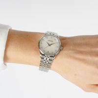 Корпус: Корпус выполнен из нержавеющей стали 316L, которая чрезвычайно прочна и устойчива к коррозии, поверхность с полировкой до зеркального блеска. Белый перламутровый циферблат украшен 11 бриллиантами Top Wesselton VS-SI общим весом 0,041 карата. Часовые индексы и стрелки выполнены из стали. Сапфировое стекло, устойчивое к появлению царапин, обладающее высокой прозрачностью. Диаметр корпуса составляет 32 мм. Водонепроницаемость: 30 м.