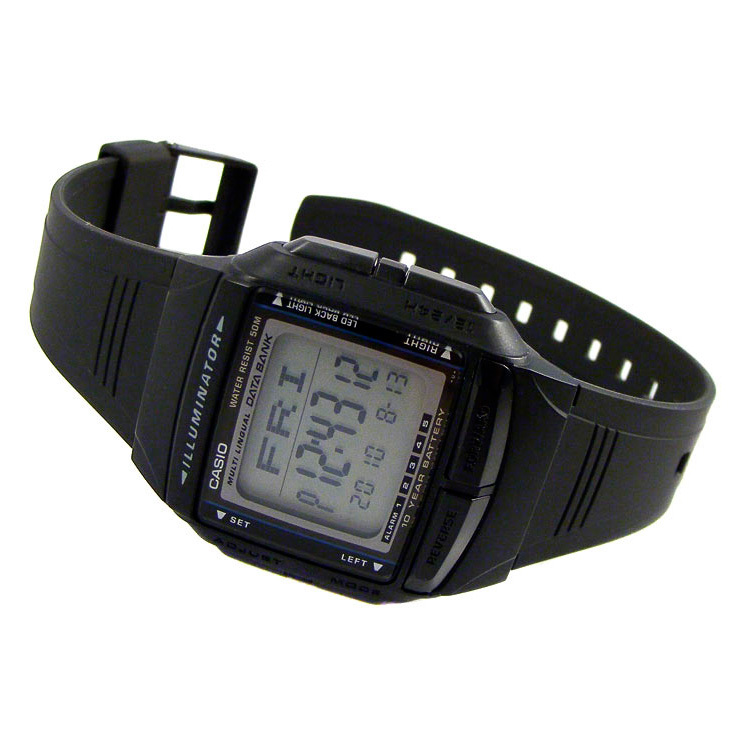 Функции: Отображение часов, минут и секунд. Формат времени 12/24-часовой. Записная книжка на русском языке, 30 номеров. Автоматический календарь учитывает количество дней в месяцах, включая 28 в феврале. Второй часовой пояс. Отображение даты и дня недели и месяца. Дисплей дня недели на 6 языках. Секундомер с точностью измерений 1/100 сек., общее время измерений 59'59.9''. 5 независимых многофункциональных будильников. Функция повтора только для одного будильника (до 7 повторов с интервалом примерно в 5 минут). Светодиодная подсветка дисплея обеспечивает яркое свечение.