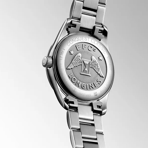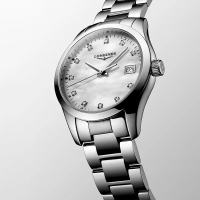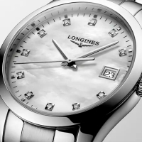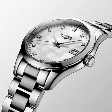 Корпус: Круглый эргономичный корпус из нержавеющей стали, поверхности с матовой шлифовкой сатинированием и глянцевой полировкой. Циферблат из натурального перламутра белого цвета, инкрустирован 11 бриллиантами. Сапфировое стекло с антибликовым покрытием. Закручивающаяся задняя крышка с гравировкой. Диаметр 34 мм. Водозащита 50 м.