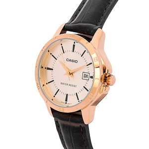 Ремешок: Кожаный ремешок коричневого цвета, стандартная застежка.