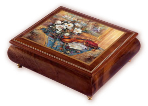 Она пятикратная обладательница премии «Художник года» от Ассоциации дилеров по ограниченным тиражам (беспрецедентный случай за 92-летнюю историю ограниченных тиражей) и была выбрана «Женщиной года» Советом по церебральному параличу. Она живёт и работает в студии в Бока-Ратон, штат Флорида. Сегодня Сандра Кук — одна из самых известных и востребованных художниц в Северной Америке) на крышке. Открыв шкатулку, вы увидите просторное внутреннее пространство, отделанное бархатом, которые идеально подходят для хранения небольших сокровищ, таких как украшения или памятные вещи. Мягкая внутренняя отделка не только защищает ценности, но и дополняет полированное дерево внутри шкатулки. Благодаря откидной крышке музыкальная шкатулка обеспечивает лёгкий доступ, что делает её одновременно функциональной и эстетичной. Кроме того, шкатулка стоит на элегантных латунных ножках, что подчёркивает её изысканный дизайн. При открытии она воспроизводит успокаивающую мелодию, создавая атмосферу спокойствия и ностальгии. Эта итальянская музыкальная шкатулка ручной работы идеально подойдёт коллекционерам, любителям музыки или тем, кто ценит изысканное ремесленное мастерство. Бренд воплощает итальянское наследие и мастерство в каждом изделии, создавая неподвластные времени сувениры.