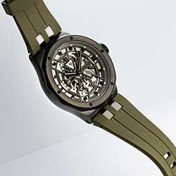 Часы Delfin Mecano от Edox стали настоящим хитом среди любителей часов по всему миру. Теперь бутик швейцарского часового производителя расширяет семейство Delfin Mecano новой моделью, выполненной в изысканной прохладной цветовой гамме. Сочетание грифельно-серого безеля и выступов в сочетании с ремешком цвета мха и скелетонизированными вставками на циферблате создает на запястье смелый, но утонченный вид часов.