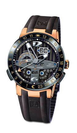 Циферблат часов украшен тёмно-коричневыми полосками в стиле "женевских волн" и имеет многоуровневую систему индикации: центральные стрелки (часовая, минутная и секундная), большой указатель даты (чуть ниже и правее отметки "12" часов), Т- образный "экран" вечного календаря (с указателями дня недели, месяца и года), имеющий надпись "Ulysse Nardin" и изображение фирменного якоря, хронометрическая шкала со специальной стрелкой и керамический безель с 24-часовой разметкой. Надёжно защищает циферблат сапфировое стекло с антибликовым покрытием. Прозрачная сапфировая задняя крышка часов позволяет наблюдать работу сертифицированного часового автоматического механизма (калибр UN-32) с ротором из белого золота, 34 рубиновыми камнями и 45-часовым запасом хода.