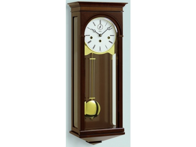 Часы оснащены механизмом (на 12 рубинах и 8 подшипниках) с тросовым приводом, двумя никелированными гирями и большим серебристым круглым маятником на специальной длинной подвеске. Запас хода механизма – восемь дней. Через каждые полчаса скрытый гонг часов воспроизводит бой.