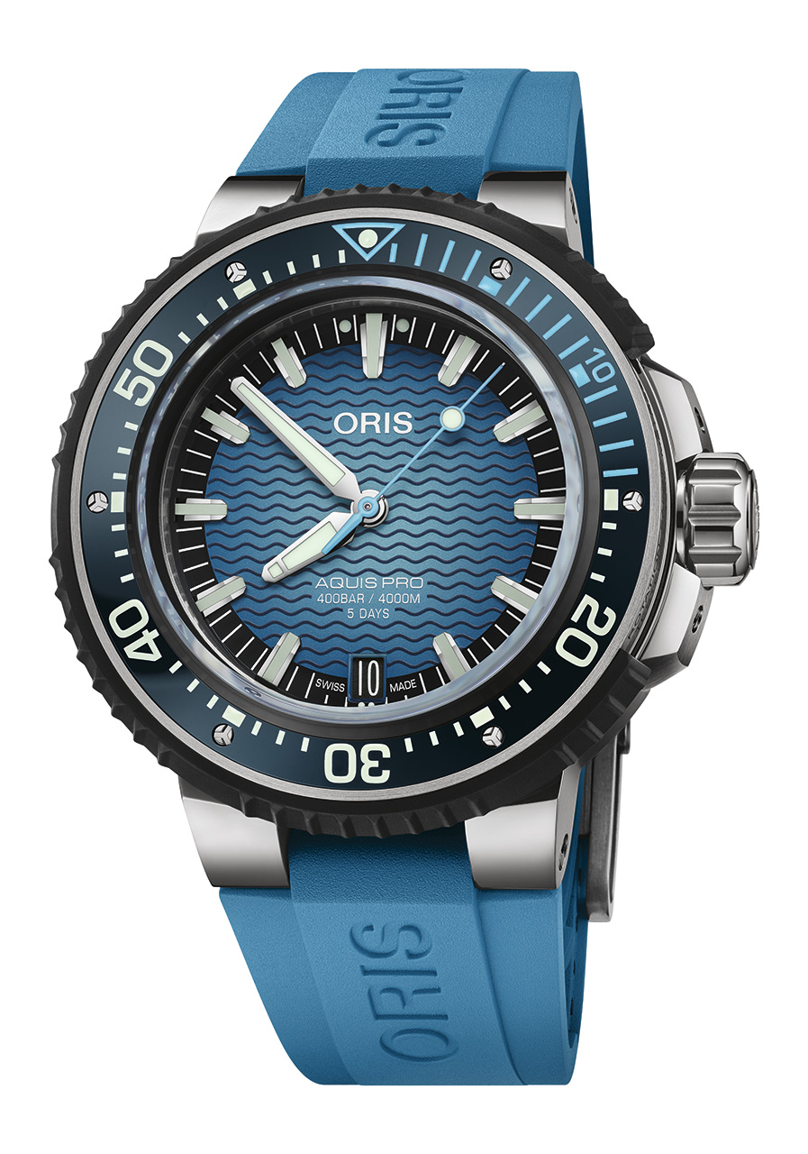 Компания Oris представляет свои самые водонепроницаемые часы для дайверов - AquisPro 4000m. Титановый корпус, способный выдерживать давление до 400 бар (4000 метров), делает их идеальным выбором для профессиональных дайверов. Часы оснащены уникальными технологиями, включая безопасную систему вращения безеля, созданную Oris совместно с экспертами-дайверами, а также инновационную систему регулировки ремешка.
