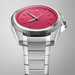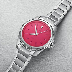 • Циферблат: Розовый, бриллиант багетной огранки на «12 часов»