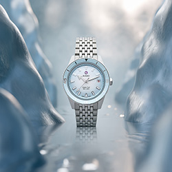 Первая модель с светло-голубым циферблатом и керамическим безелем в тон передаёт атмосферу тёплого летнего дня. Вторая - с чёрно-бирюзовым оформлением, выглядит более динамично, отражая энергию глубоководных приключений.