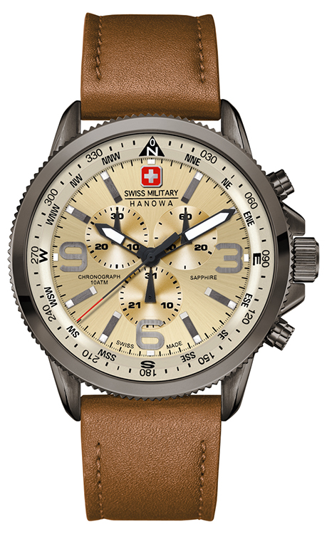 3. Swiss Military Hanowa Arrow Chrono 06-4224.30.002: корпус с ионным напылением цвета оружейной стали, светло-коричневый циферблат и светло-коричневый ремешок.